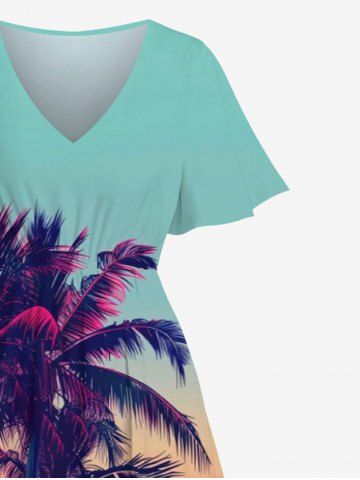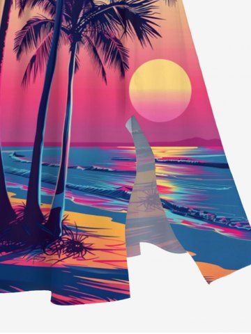 Plus Size Coconut Tree Sun Seascape Ombre Print Split Hawaii Midi Dress - Multicolor-a - 2x