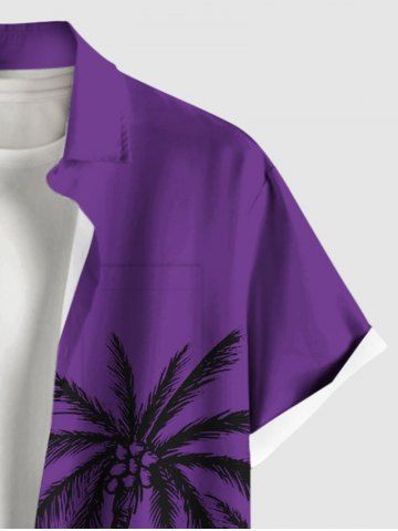 Plus Size Coconut Tree Tropical Leaf Print Buttons Pocket Hawaii Shirt For Men - Púrpura - Púrpura