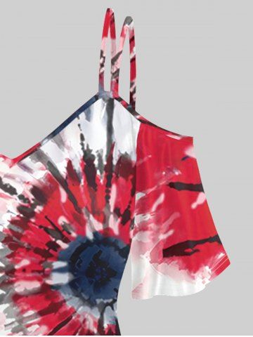 Plus Size Cold Shoulder Tie Dye Short Sleeves T-shirt - Rojo - Rojo