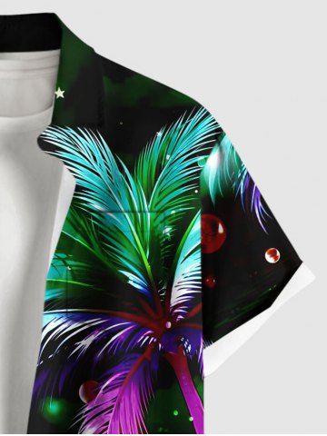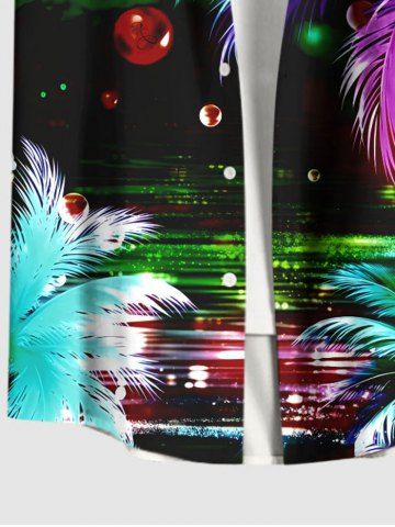 Plus Size Colorful Ombre Coconut Tree Water Drop Stars Print Hawaii Button Pocket Shirt For Men - Negro - Negro