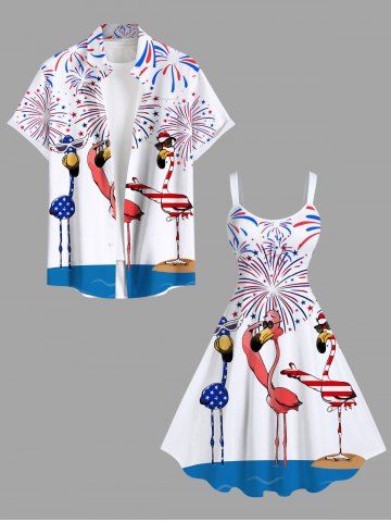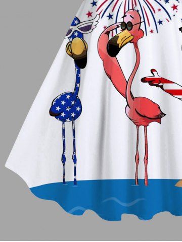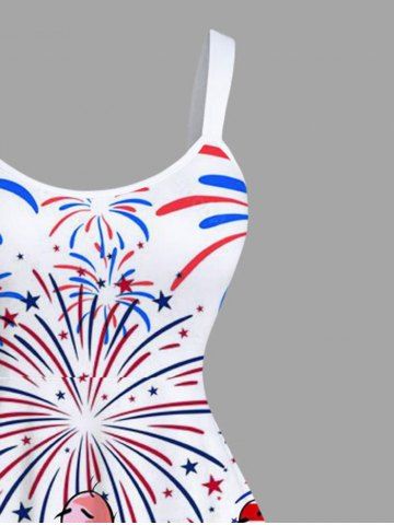 Plus Size Colorful Patriotic American Flag Fireworks Flamingo Print Hawaii A Line Tank Dress - Blanco - Blanco