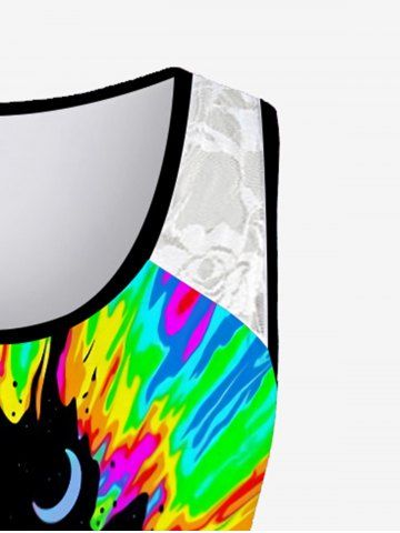 Plus Size Contrast Lace Panel Holography Mushroom Printed Tank Top - Multicolor-a - 3x | Us 22-24