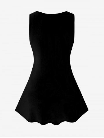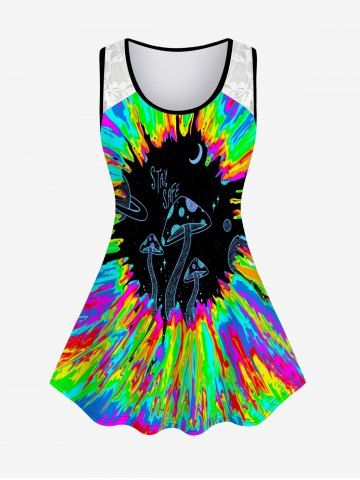 Graphic Tanks > Plus Size Contrast Lace Panel Holography Mushroom Printed Tank Top