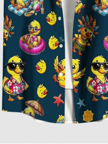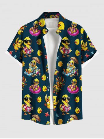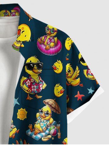 Plus Size Ducks Swimming Ring Starfish Sun Print Buttons Pocket Hawaii Shirt For Men - Azul De Medianoche - S
