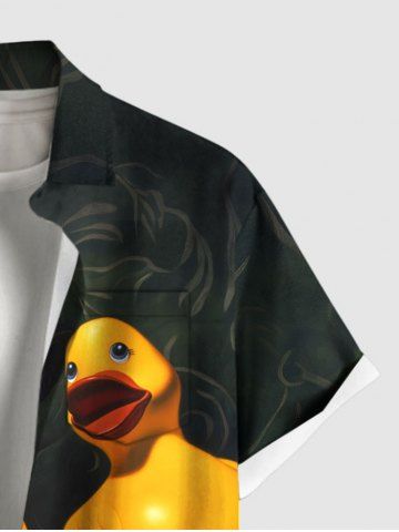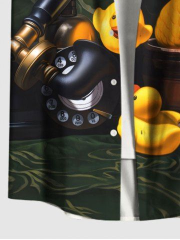 Plus Size Ducks Telephone Print Buttons Pocket Hawaii Shirt For Men - Negro - Negro