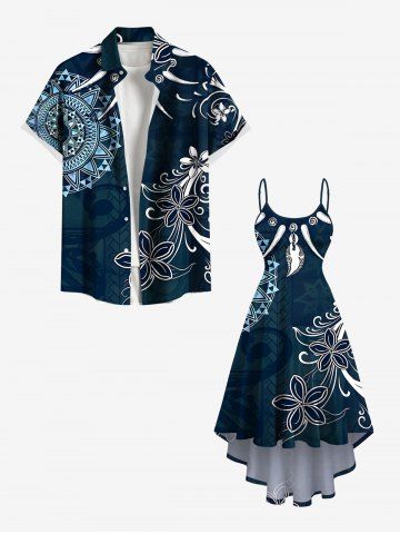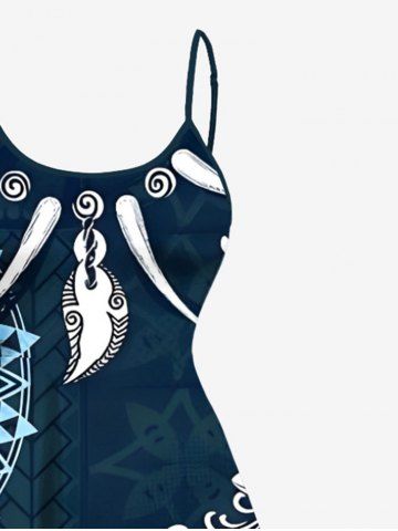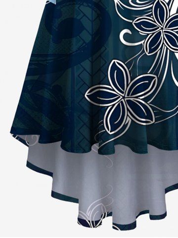 Plus Size Ethnic Flowers Compass Ivory Necklace Print High Low Hawaii Cami Dress - Verde Oscuro - Xs