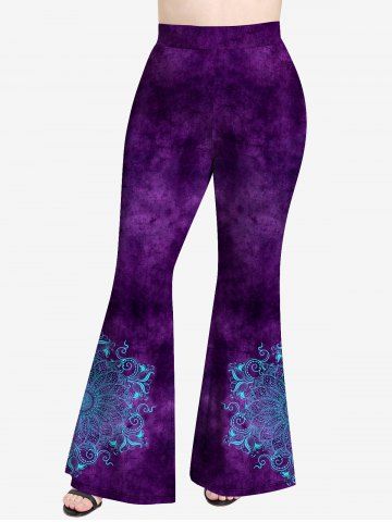 Graphic Leggings > Plus Size Floral Figure Print Flare Pants
