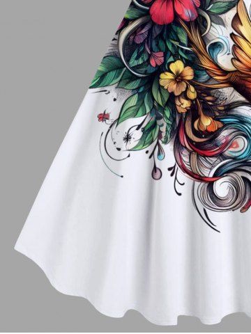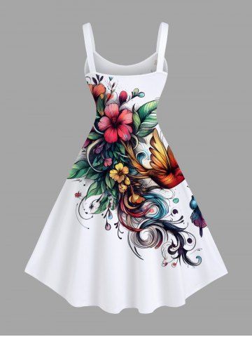 Plus Size Flower Leaf Bird Print Hawaii Tank Dress - Blanco - Blanco