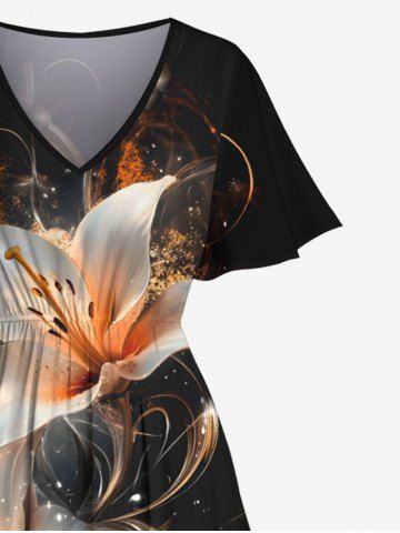 Plus Size Flower Leaf Glitter 3D Print Split Hawaii Midi Dress - Negro - Negro