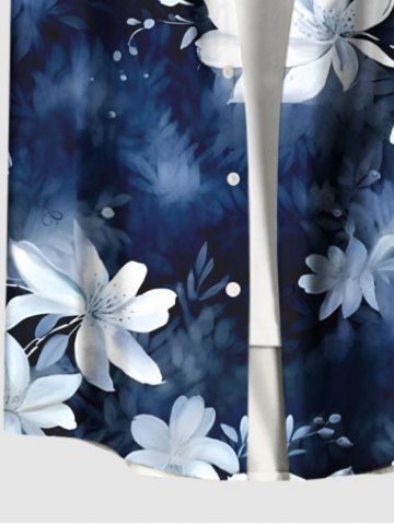 Plus Size Flower Ombre Print Hawaii Button Pocket Shirt For Men - Azul - Azul