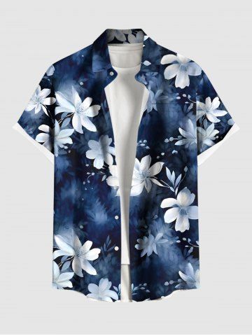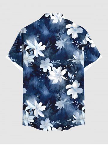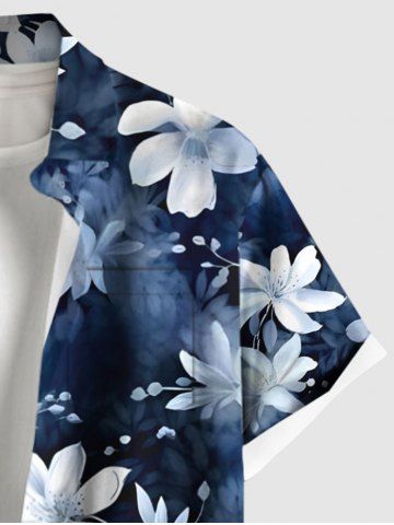 Plus Size Flower Ombre Print Hawaii Button Pocket Shirt For Men - Azul - Azul