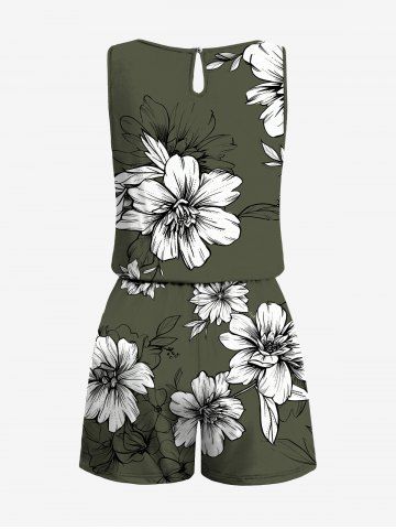 Plus Size Flowers Leaf Tropical Leaf Print Cinched Hawaii Romper - Ejercito Verde - 5x