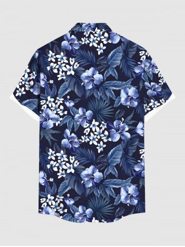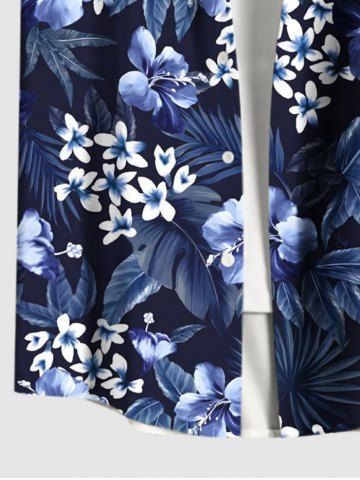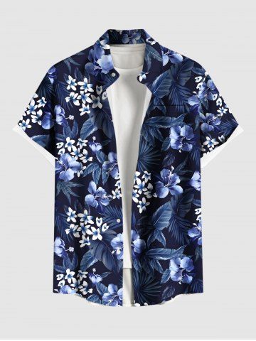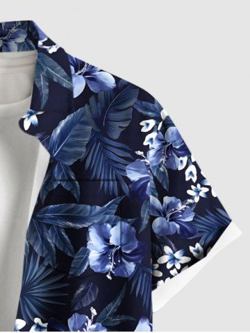 Plus Size Flowers Leaf Tropical Print Buttons Pocket Hawaii Shirt For Men - Azul Marino - Azul Marino