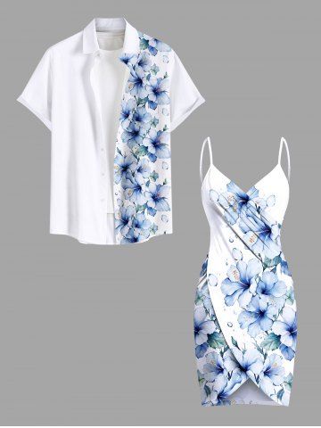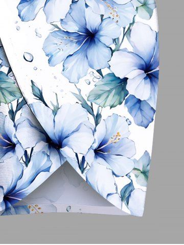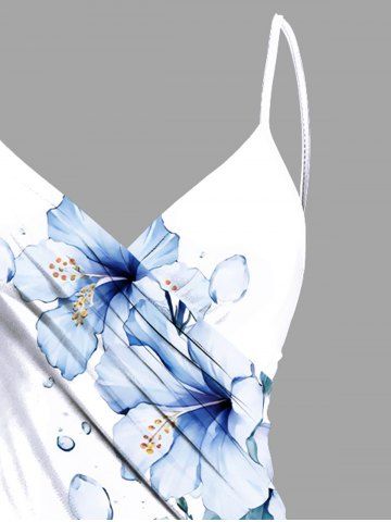Plus Size Flowers Leaf Tropical Print Convertible Hawaii Beach Cover - Blanco - Blanco