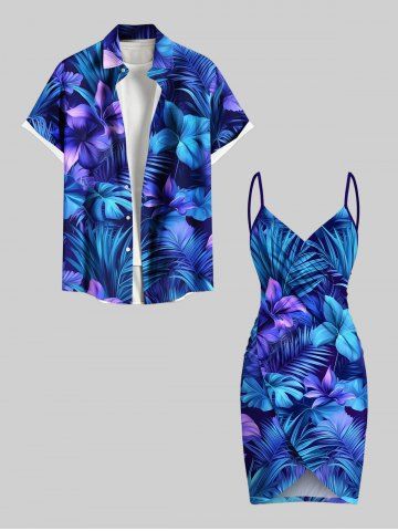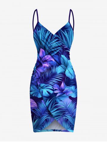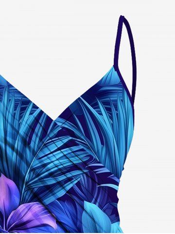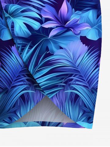 Plus Size Flowers Tropical Leaf Print Convertible Hawaii Beach Cover - Celeste - Cielo Azul
