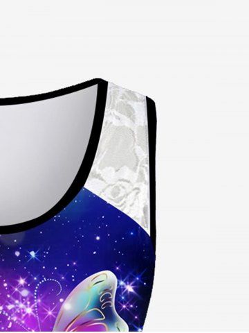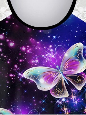 A*****a5Plus Size Galaxy Butterfly Printed Lace Panel Tunic TopColor: PURPLE Size: 5X | US 30-32Beautiful fabric and very soft and comfortable. Fits perfectly. I love it.