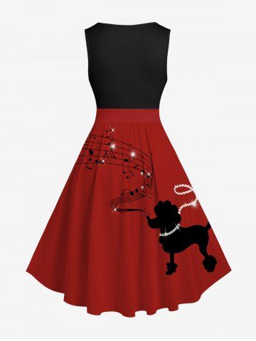 Plus Size Glitter Sparkling Rhinestone Buckle Music Symbol Dog Printed A Line Sleeveless Vintage Dress - Color Rojo Oscuro - 2x