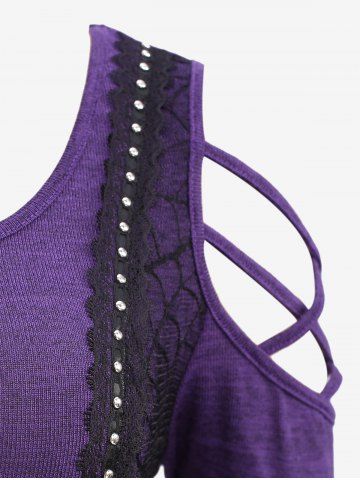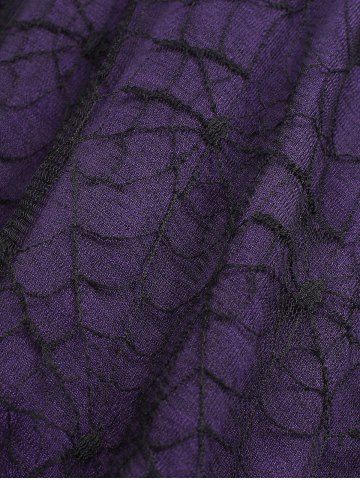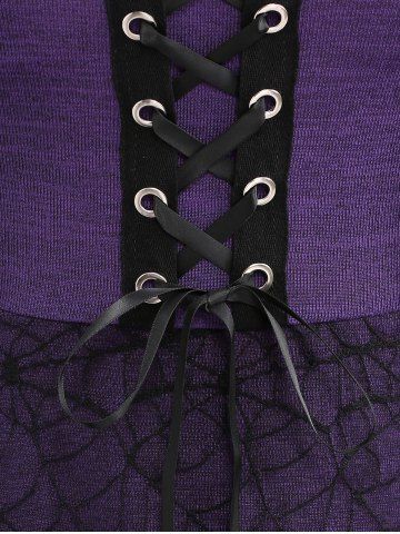Plus Size Grommet Lace Up Spider Web Mesh Cold Shoulder Braided Sleeves Dress - Púrpura - Púrpura