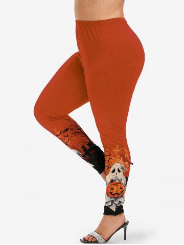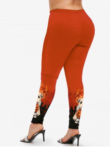 Plus Size Halloween Pumpkin Ghost Bat Moon Print Leggings - Naranja Oscuro - Xs
