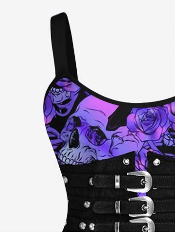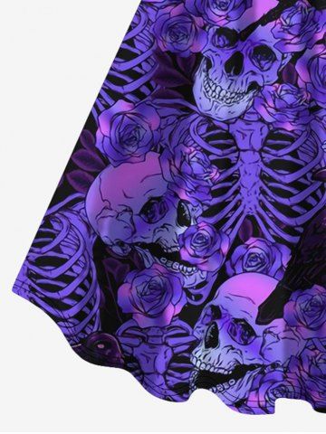 Plus Size Halloween Rose Skull Bird Buckles Grommets 3D Print Tank Dress - Púrpura - Púrpura
