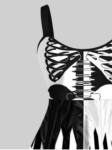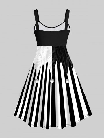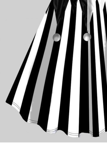 Halloween Clown Costume Skeleton Stripe Print Plus Size Tank Dress Jester Lady - Negro - Negro