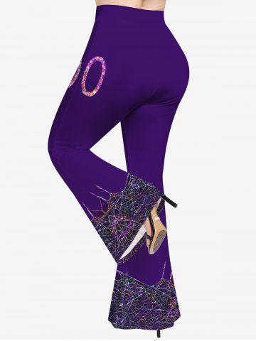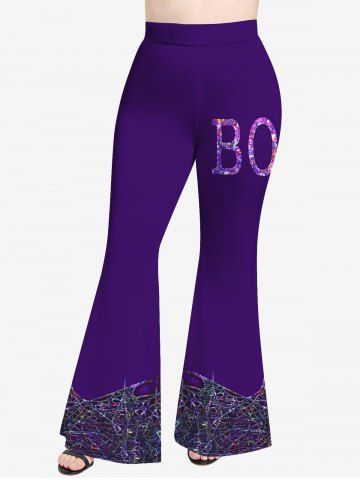 Plus Size Halloween Sparkling Sequin Letters Spider Web Print Flare Pants - Concordia - 1x
