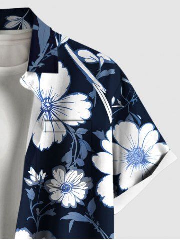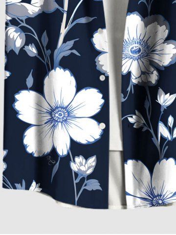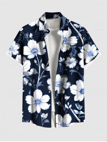 Plus Size Hibiscus Flower Branch Print Hawaii Ombre Button Pocket Shirt For Men - Negro - Negro