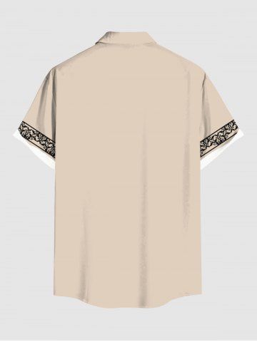 Plus Size Hibiscus Flower Leaf Branch Ethnic Print Hawaii Button Pocket Shirt For Men - Albaricoque - Albaricoque