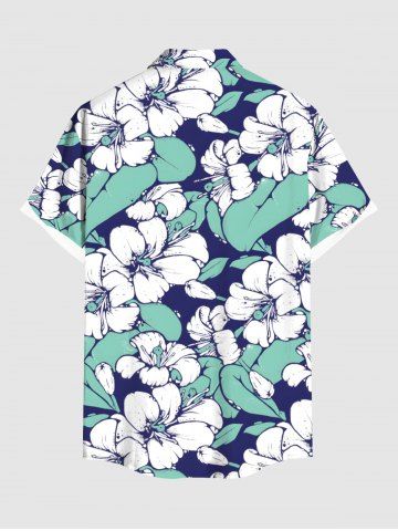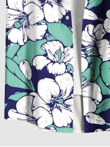 Plus Size Hibiscus Flower Leaf Tropical Print Buttons Pocket Hawaii Shirt For Men - Celeste - Cielo Azul