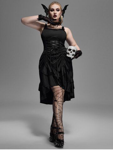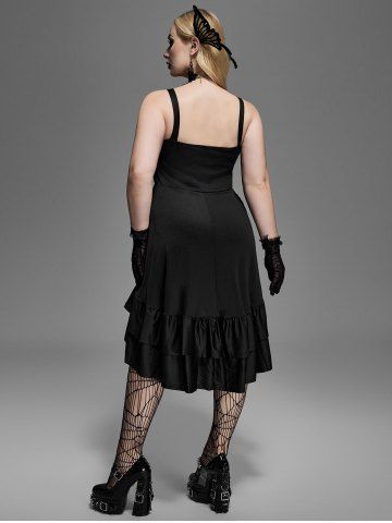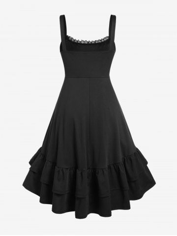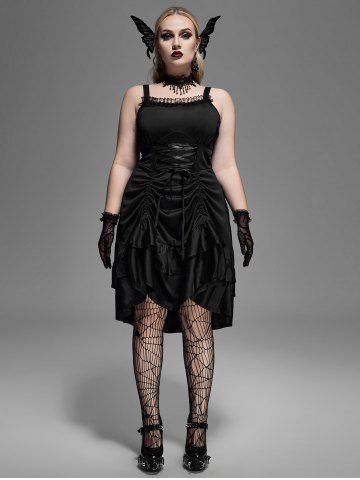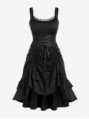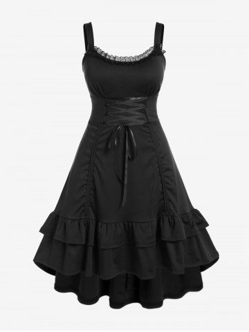 A*****e4Plus Size Lace-trim Lace-up Layered Ruffled Cinched Ruched Sleeveless Midi DressColor: BLACK Size: 4X | US 26-28Dr SS fits like a dream and is something my daughter likes enough to think of borrowing in in a way that will force me to buy a new dress. That is one of the best complements a mom can get about the clothes she bought.....
