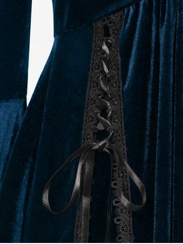 Gothic Plus Size Lace-up Cinched Ruched Lace Trim Velvet Flare Sleeves Top