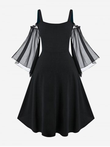 Alternative & Gothic Dress > Plus Size Lace Up Cold Shoulder Flare Sleeves High Low Ruched Renaissance Corset Dress