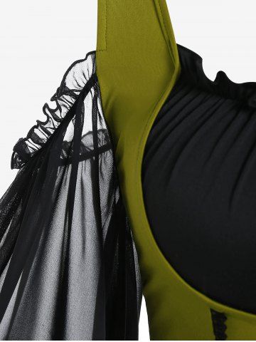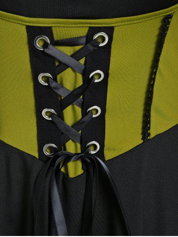 Plus Size Lace Up Cold Shoulder Flare Sleeves High Low Ruched Renaissance Corset Dress - Verde De Algas Marinas - L | Us 12