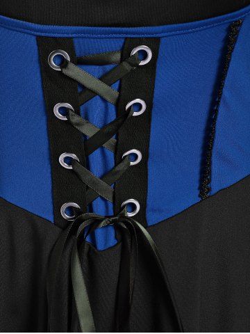 Plus Size Lace Up Cold Shoulder Flare Sleeves High Low Ruched Renaissance Corset Dress - Azul De Arándanos - 2x | Us 18-20