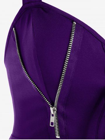 Plus Size Lace Up Zipper Crisscross Handkerchief Tank Top