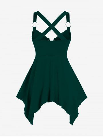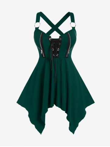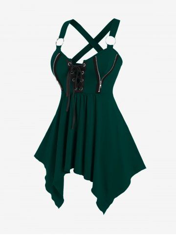 Plus Size Lace Up Zipper Crisscross Handkerchief Tank Top - Verde Oscuro - L | Us 12