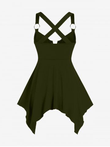 Plus Size Lace Up Zipper Crisscross Handkerchief Tank Top - Verde Claro - Verde Claro