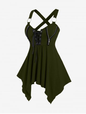 Tank tops > Plus Size Lace Up Zipper Crisscross Handkerchief Tank Top