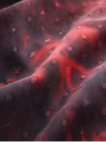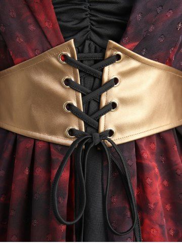 Halloween Vampire Costume Plus Size Lapel Collar Flare Sleeves Spotted Jacquard Tie Dye Lace Up Ruched Belted 2 in 1 A Line Dress - Rojo - Rojo