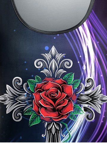 Plus Size Light Beam Cross Flower Print T-shirt - Negro - Negro