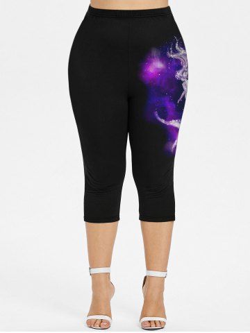 Graphic Leggings > Plus Size Mermaid Galaxy Glitter Print Capri Leggings