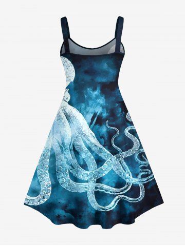Graphic Dresses > Plus Size Octopus Ombre Sea Print Hawaii Tank Dress