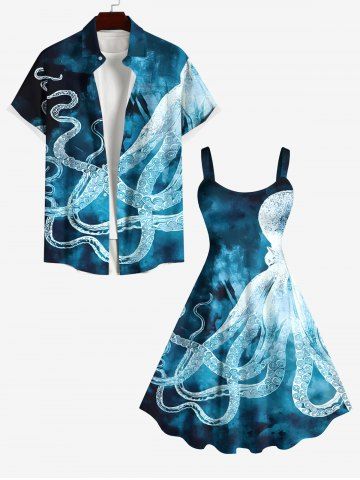 Plus Size Octopus Ombre Sea Print Hawaii Tank Dress - Multicolor-a - 4x
