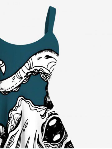 Plus Size Octopus Print Hawaii Tank Dress - Verde Oscuro - 1x