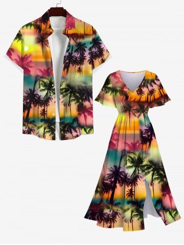 a*****r5Ombre Galaxy Sun Coconut Tree Print Dress and Button Pocket Shirt Plus Size Matching Hawaii Beach Outfit For CouplesColor: MULTI-AMy husband and I love matching when we dress for dinner on our cruises. We get a lot of attention and compliments on this outfit. The material is nice quality. My husband looks good in his shirt and he says it is very comfortable. I love the way the dress falls.