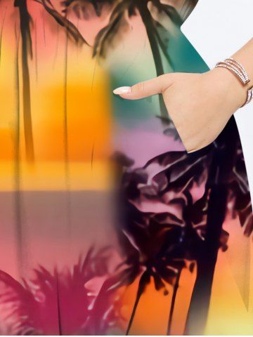 K*****y5Ombre Galaxy Sun Coconut Tree Print Dress and Button Pocket Shirt Plus Size Matching Hawaii Beach Outfit For CouplesColor: MULTI-AThese items are beautiful! The dress fits true to size and is very flattering to my body type. The fabric is soft and flowy. The pockets are great to have. The shirt is a nice cut, made from the same material.