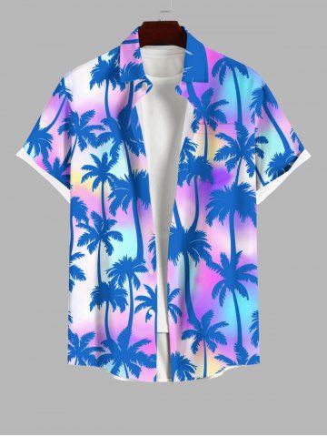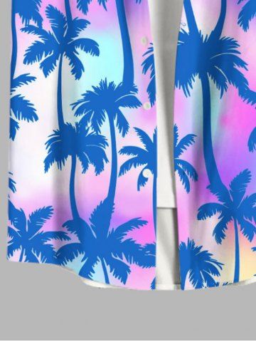 Plus Size Ombre Tie Dye Coconut Tree Print Buttons Pocket Hawaii Shirt For Men - Multicolor-a - S