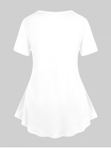 Plus Size Patriotic Sunflower American Flag Letters Printed Graphic Tee - Blanco - Blanco