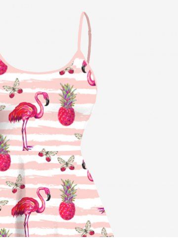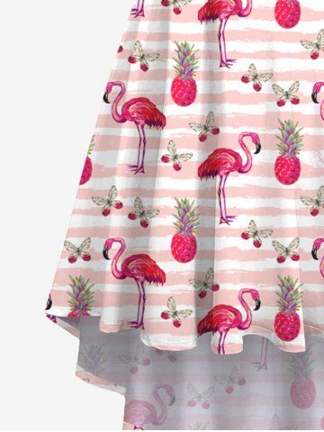 Plus Size Pineapple Flamingo Butterfly Print High Low Hawaii Cami Dress - Rosa Claro - Rosa Luz