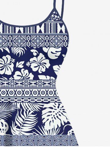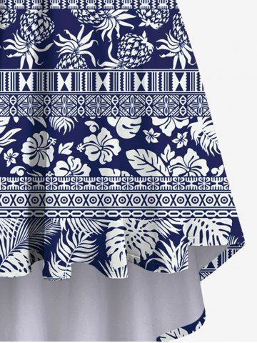 Plus Size Pineapple Floral Coconut Tree Striped Print Backless High Low A Line Hawaii Asymmetric Dress - Azul - Azul